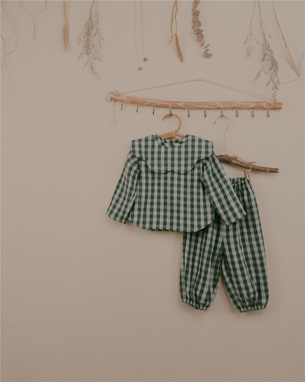 In a classic green gingham — inspired by the warmth of Christmas mornings — this piece pairs effortlessly with our matching top or any neutral knit. Lightweight yet cozy, it’s a capsule essential made for slow, joyful days at home and beyond.
