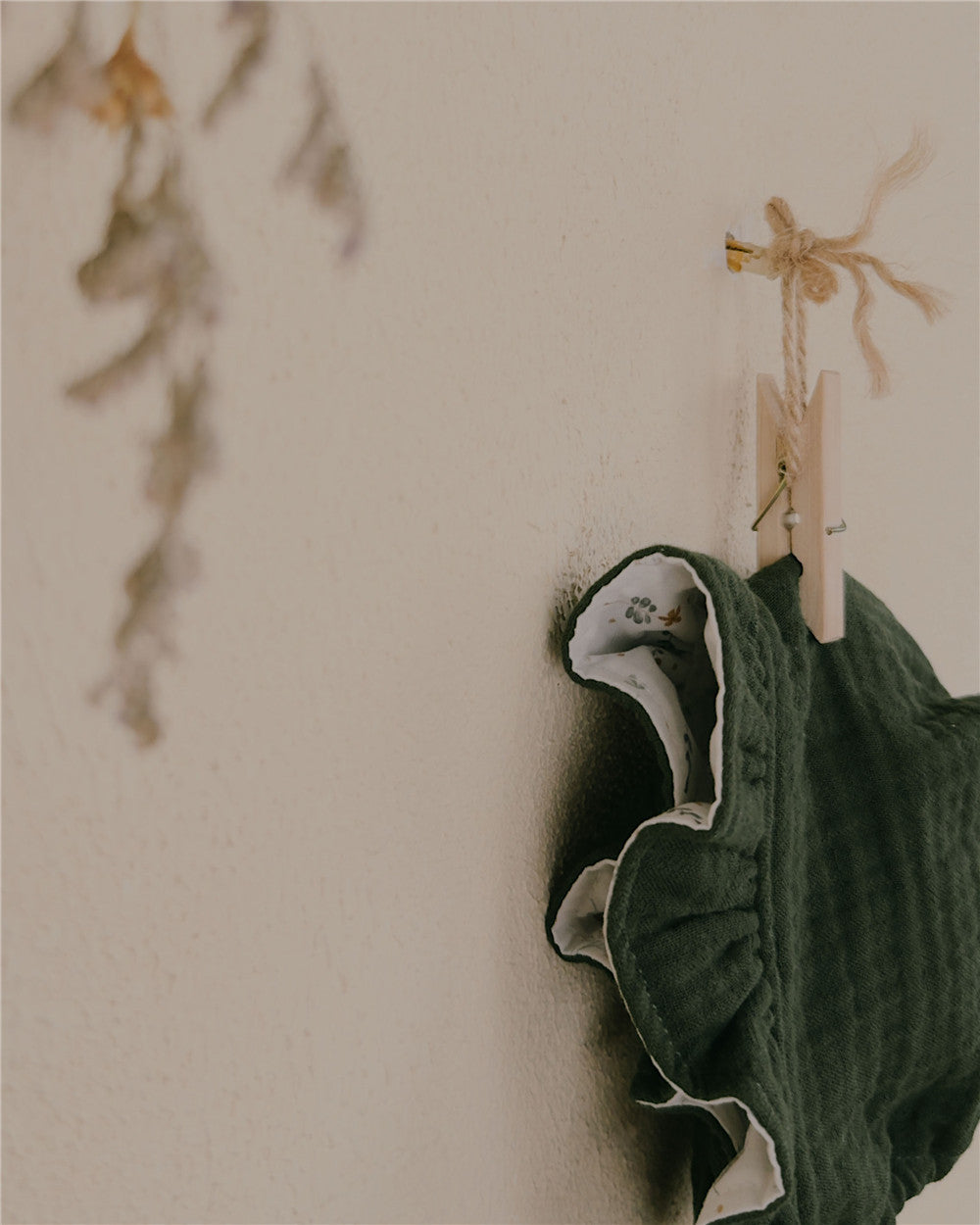 Made from breathable cotton gauze on the outside and organic printed cotton on the inside, it feels just right for newborn skin—lightweight, never stuffy, and soft enough to wear all day.